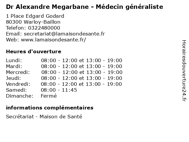 | Lundi | 08:00-12:00 et 13:00-19:00 |