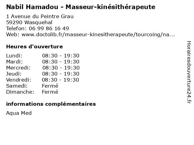Termes de recherche pour Nabil Hamadou - Masseur-kinésithérapeute:medecine, medical, secretariat, traitement, médecin, masseur, pharmaceutique, kinésithérapeute, nabil, hamadou |