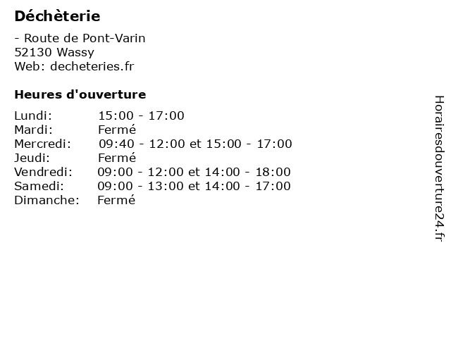 1 Déchèterie (Distance: 12,08 km) - Route de Sainte Livière, 52290 Éclaron-Braucourt-Sainte-Livière déchèterie, gravats, huiles usées, la réception des déchets et écocentres, les appareils électroménagers, les déchets verts, papier et carton en quantité 2 Déchèterie (Distance: 12,23 km) - des Longues Royes, 52410 Eurville-Bienville déchèterie, gravats, huiles usées, la réception des déchets et écocentres, les appareils électroménagers, les déchets verts, papier et carton en quantité 3 Déchèterie (Distance: 12,79 km) - Rue du Patis, 52220 Montier-en-Der déchèterie, gravats, huiles usées, la réception des déchets et écocentres, les appareils électroménagers, les déchets verts, papier et carton en quantité 4 Déchèterie (Distance: 13,40 km) - Doulevant-Le-Château, 52110 Doulevant-le-Château déchèterie, gravats, huiles usées, la réception des déchets et écocentres, les appareils électroménagers, les déchets verts, papier et carton en quantité 5 Déchèterie (Distance: 17,34 km) - Rue Bonnor, 52100 Saint-Dizier déchèterie, gravats, huiles usées, la réception des déchets et écocentres, les appareils électroménagers, les déchets verts, papier et carton en quantité 6 Déchèterie (Distance: 18,59 km) - Route Departementale897, 67220 Villé déchèterie, gravats, huiles usées, la réception des déchets et écocentres, les appareils électroménagers, les déchets verts, papier et carton en quantité |