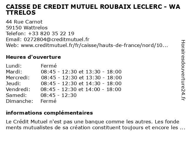 Termes de recherche pour CAISSE DE CREDIT MUTUEL ROUBAIX LECLERC - WATTRELOS:leclerc, de, roubaix, wattrelos, crédit, mutuel, caisse |
