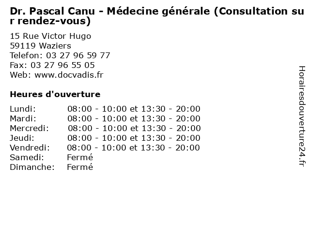 | Mercredi | 08:00-10:00 et 13:30-20:00 |