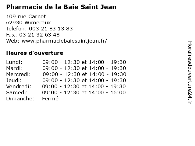 | Mercredi | 09:00-12:30 et 14:00-19:30 |