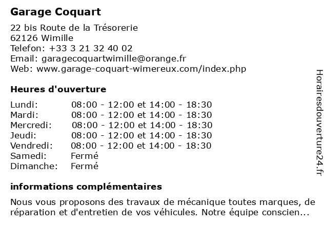 | Lundi | 08:00-12:00 et 14:00-18:30 |