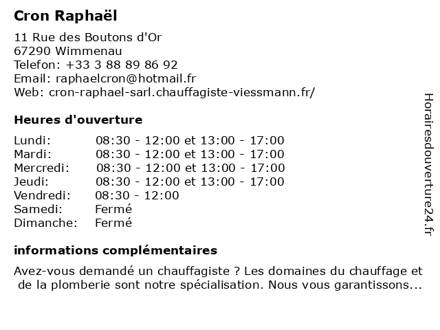 | Lundi | 08:30-12:00 et 13:00-17:00 |