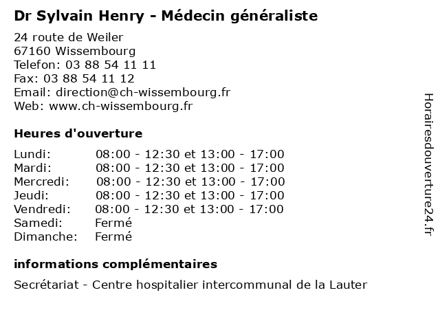 | Mercredi | 08:00-12:30 et 13:00-17:00 |