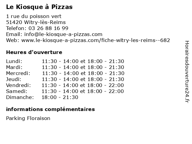| Mardi | 11:30-14:00 et 18:00-21:30 |