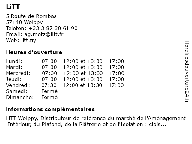 1 Litt - Agence de Metz (Distance: 0,64 km) 5 Route de Rombas, 57140 Woippy agence, cloisons, de, isolation, litt, metz, services 4 Litt - Agence de Forbach (Distance: 55,61 km) . Rue Avogadro, 57600 Folkling agence, cloisons, de, forbach, isolation, litt, services |