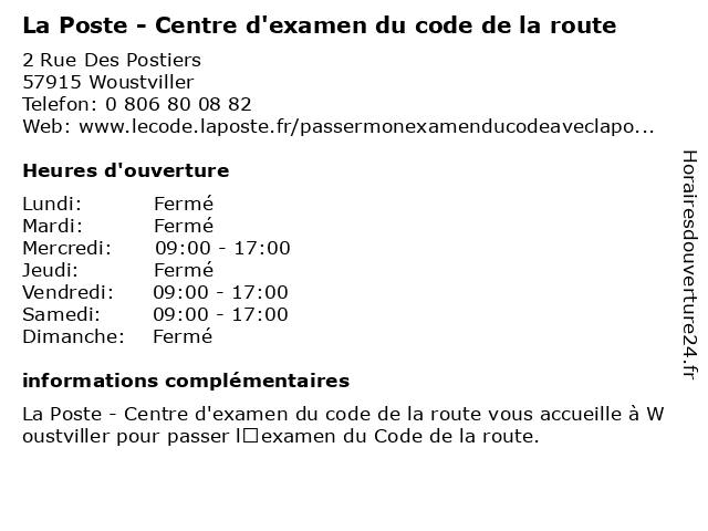 Termes de recherche pour La Poste - Centre d'examen du code de la route:poste, la, du, de, route, centre, code, d'examen, centre d'évaluation scolaire, école technique |