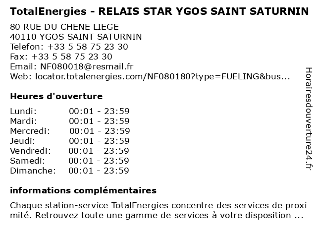 Termes de recherche pour TotalEnergies - RELAIS STAR YGOS SAINT SATURNIN:relais, saint, saturnin, ygos, total, star, gas station, station service, tankstelle, totalenergies |