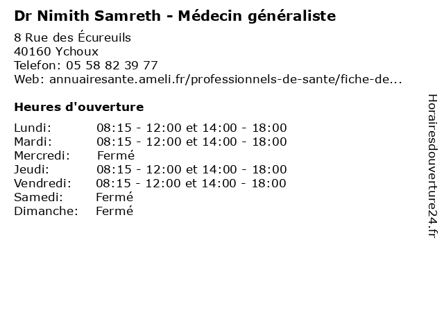 | Lundi | 08:15-12:00 et 14:00-18:00 |
