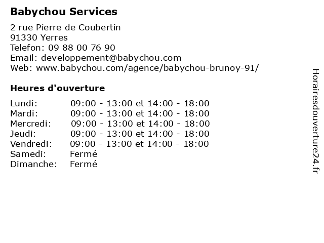 | Lundi | 09:00-13:00 et 14:00-18:00 |