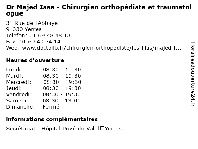 1 Dr Majed Issa - Chirurgien orthopédiste et traumatologue (Distance: 19,24 km) 41 Avenue du Maréchal Juin, 93260 Les Lilas chirurgien, dr, et, issa, majed, medecin, ortho, orthoptiste, orthopédiste, sante, traumatologue 2 Dr.François Kuntz - Chirurgien orthopédiste et traumatologue (Distance: 0,00 km) 31 Avenue de l'Abbaye, 91330 Yerres chirurgien, docteur, dr.françois, et, kuntz, medecins, orthopedie, orthopédiste, sante, traumatologue 3 Dr.Vandy Sebastian Seng - Chirurgien orthopédiste et traumatologue (Distance: 0,00 km) 31 Avenue de l'Abbaye, 91330 Yerres chirurgien, docteur, dr.vandy, et, medecins, orthopedie, orthopédiste, sante, sebastian, seng, traumatologue 4 Dr Fadi Aboufarah - Chirurgien orthopédiste et traumatologue (Distance: 0,00 km) 31 Rue de l'Abbaye, 91330 Yerres aboufarah, chirurgien, consultation, docteur, dr, et, fadi, med, médecin, médecine, orthopédiste, traitement, traumatologue 5 Dr.Issam Kanso - Chirurgien orthopédiste et traumatologue (Distance: 0,00 km) 31 Avenue de l'Abbaye, 91330 Yerres chirurgien, docteur, dr.issam, et, kanso, medecins, orthopedie, orthopédiste, sante, traumatologue 6 Dr Sébastien Seng - Chirurgien orthopédiste et traumatologue (Distance: 0,02 km) 31 Rue de l'Abbaye, 91330 Yerres chirurgien, consultation, docteur, dr, et, med, médecin, orthopédiste, seng, sébastien, traitement, traumatologue |
