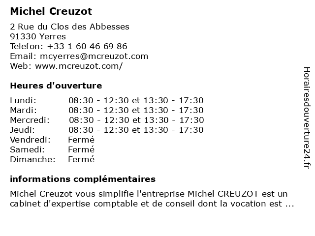| Mercredi | 08:30-12:30 et 13:30-17:30 |