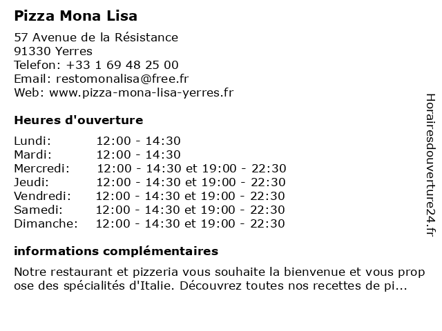 | Mercredi | 12:00-14:30 et 19:00-22:30 |