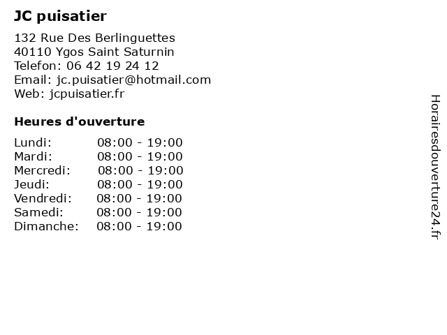 | Samedi | 08:00-19:00 |
