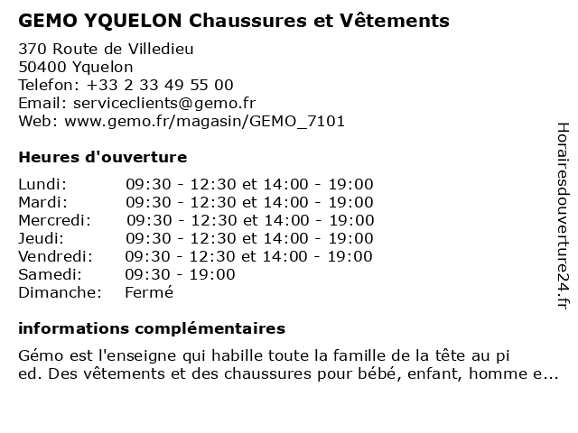 | Mercredi | 09:30-12:30 et 14:00-19:00 |