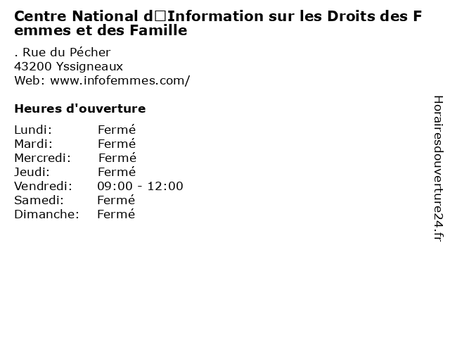 1 Centre d’information et D’Orientation (Distance: 0,12 km) . Rue du Pêcher, 43200 Yssingeaux administration, assoc, centre, cio, d’information, d’orientation, et, services, services publics, yssingeaux 3 Point Info Famille (Distance: 17,28 km) 15 Avenue de la Libération, 43120 Monistrol-sur-Loire administration, assoc public, famille, info, mairie, point 4 Centre National d’Information sur les Droits des Femmes et des Famille (Distance: 20,42 km) . Rue Paule Gravejal, 43000 Le Puy en Velay centre, des, droits, d’information, et, famille, femmes, les, national, publics, services, sur 5 Centre d'Information et d'Orientation (CIO) (Distance: 20,94 km) 12 Rue de Vienne, 43000 Le Puy-en-Velay administration, assoc, centre, cio, d'information, d'orientation, d’information, d’orientation, et, services, services publics 6 Centre National d’Information sur les Droits des Femmes et des Famille (Distance: 22,22 km) . Place Eugène Pébellier, 43000 Le Puy en Velay centre, des, droits, d’information, et, famille, femmes, les, national, publics, services, sur |