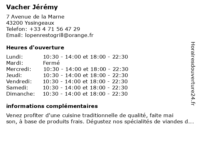 | Lundi | 10:30-14:00 et 18:00-22:30 |