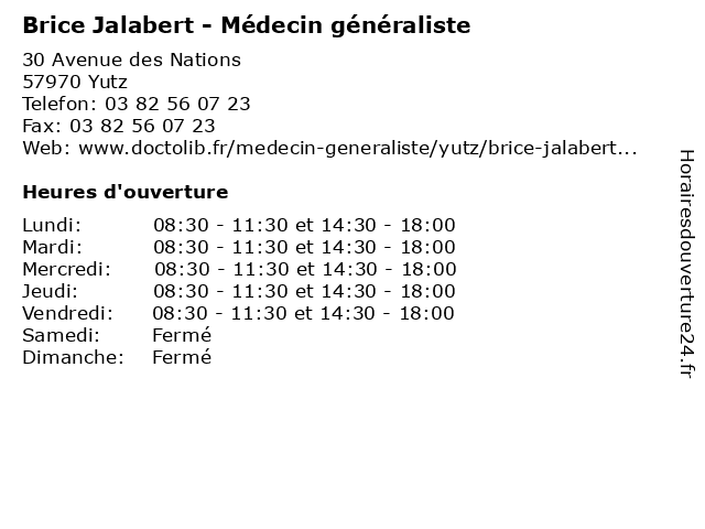 | Mardi | 08:30-11:30 et 14:30-18:00 |
