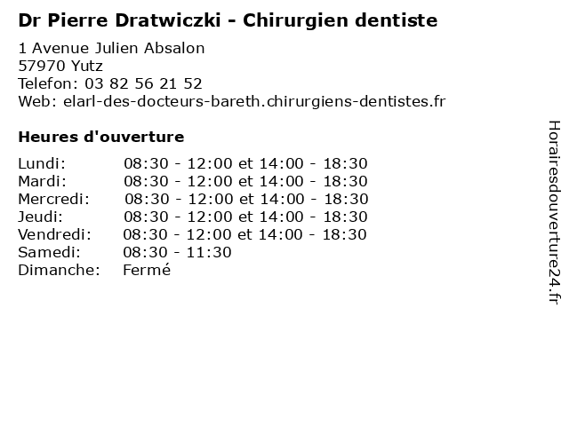 | Lundi | 08:30-12:00 et 14:00-18:30 |