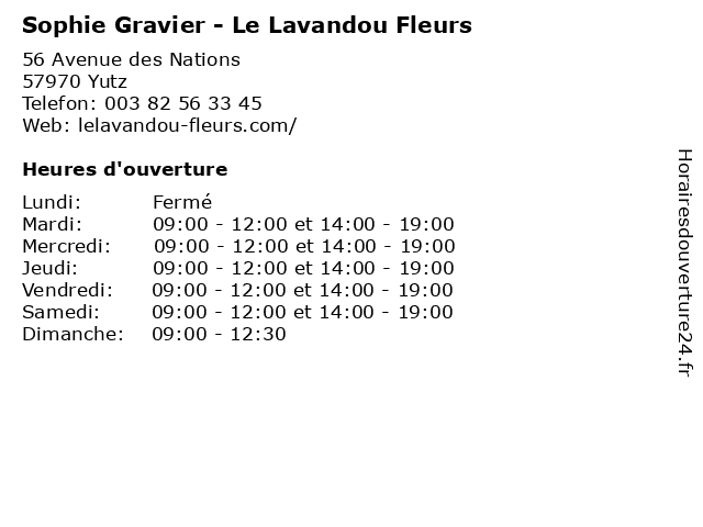 | Samedi | 09:00-12:00 et 14:00-19:00 |