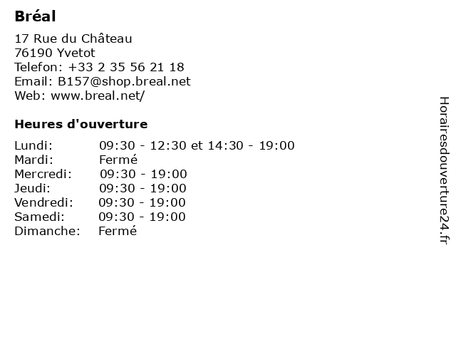 | Lundi | 09:30-12:30 et 14:30-19:00 |