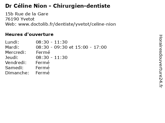 | Mardi | 08:30-09:30 et 15:00-17:00 |