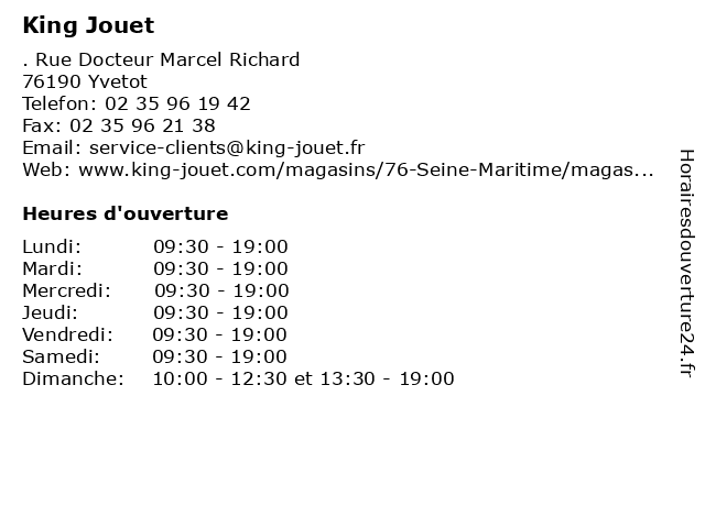 Dimanche | 10:00-12:30 et 13:30-19:00 |