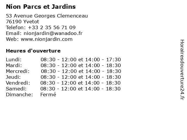 | Samedi | 08:30-12:00 et 14:00-18:30 |