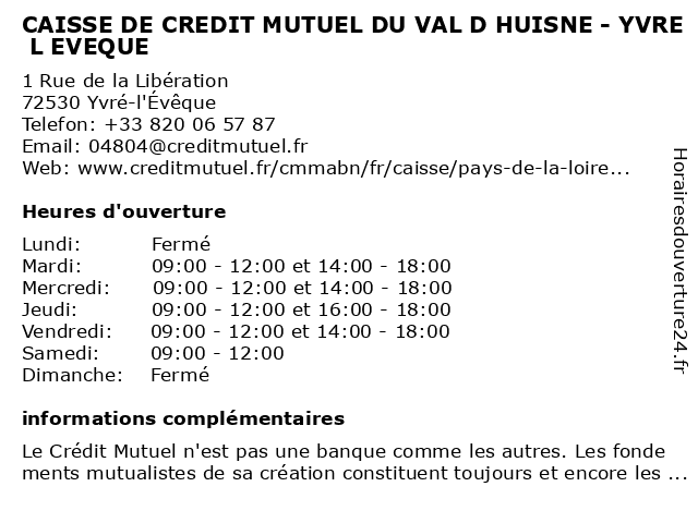 Termes de recherche pour CAISSE DE CREDIT MUTUEL DU VAL D HUISNE - YVRE L EVEQUE:val, du, de, yvre, eveque, crédit, mutuel, caisse, huisne |