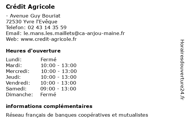| Lundi | Fermé |