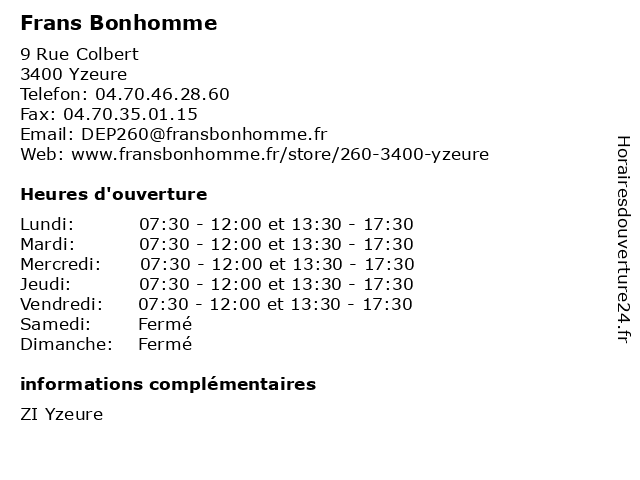 | Lundi | 07:30-12:00 et 13:30-17:30 |