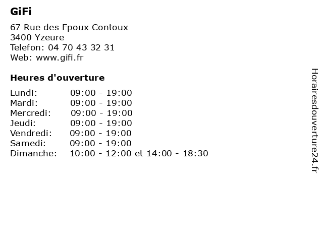 | Dimanche | 10:00-12:00 et 14:00-18:30 |